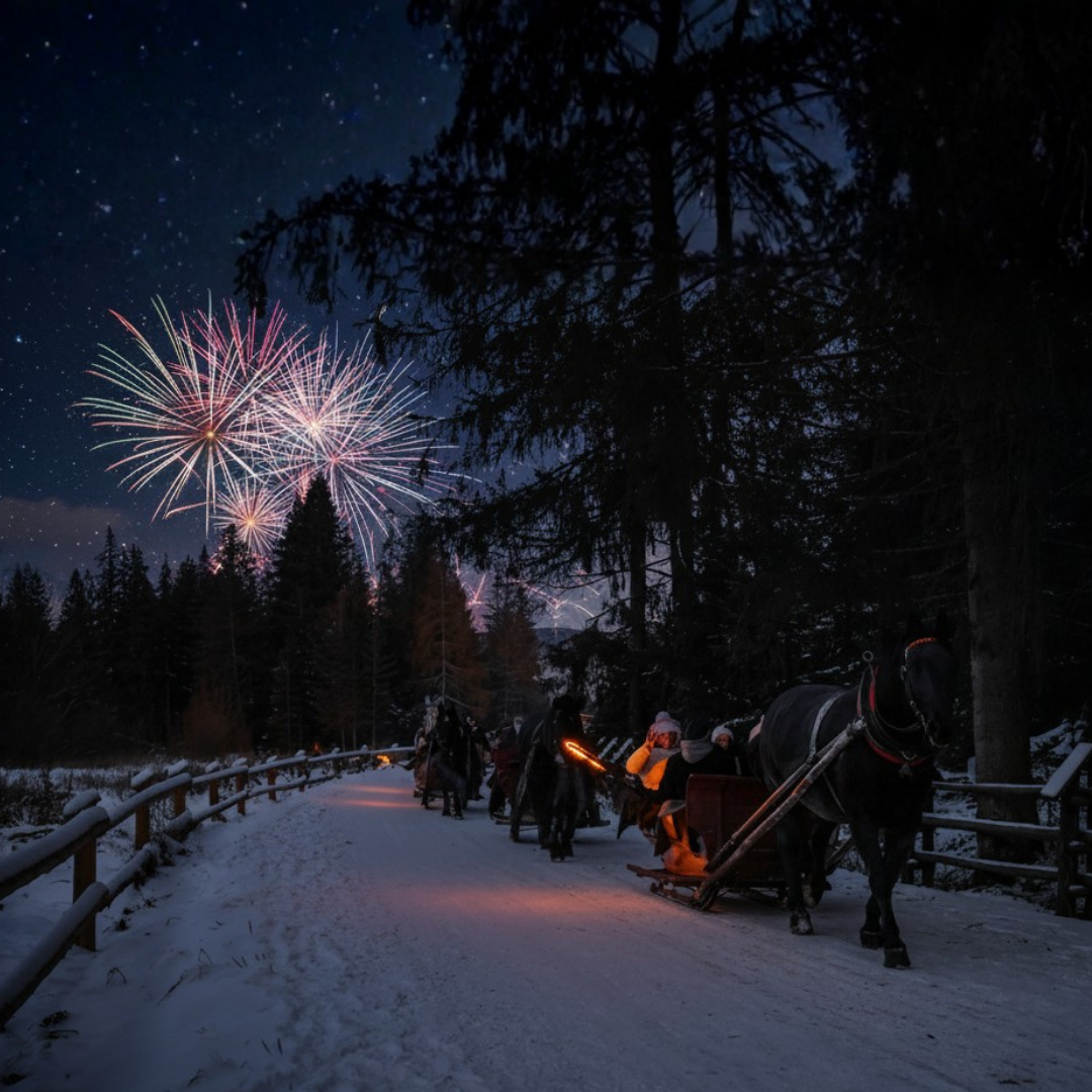 Rozpocznijcie Nowy Rok w niepowtarzalny sposób, łącząc tradycję z niezapomnianą zabawą! W dniach 28, 29, 30, 31 grudnia oraz 1 i 2 stycznia zapraszamy na wyjątkowy kulig sylwestrowy połączony z balem. W programie przewidziana jest godzinna przejażdżka saniami przez malownicze, zimowe krajobrazy, która wprowadzi Was w nastrój świętowania. Po kuligu czeka na Was ognisko w klimatycznym, górskim stylu. Serwujemy tradycyjną kiełbasę, regionalne trunki oraz gorącą herbatę, które umilą czas spędzony w blasku ognia. Do sań wliczone jest również 0,5 litra wódki na 4 osoby, co z pewnością podkręci atmosferę i dodatkowo uprzyjemni wspólny czas. Wieczorem przenosimy się na sylwestrowy bal, gdzie czeka na Was pyszne jedzenie, świetna muzyka i niezapomniana zabawa, a o północy wszyscy podziwiać będą spektakularny pokaz fajerwerków. Dla pełnego komfortu zapewniamy wygodny transport uczestników. Ta oferta to idealny sposób na świętowanie Sylwestra w gronie bliskich, czerpiąc radość z tradycyjnych atrakcji i noworocznej zabawy.