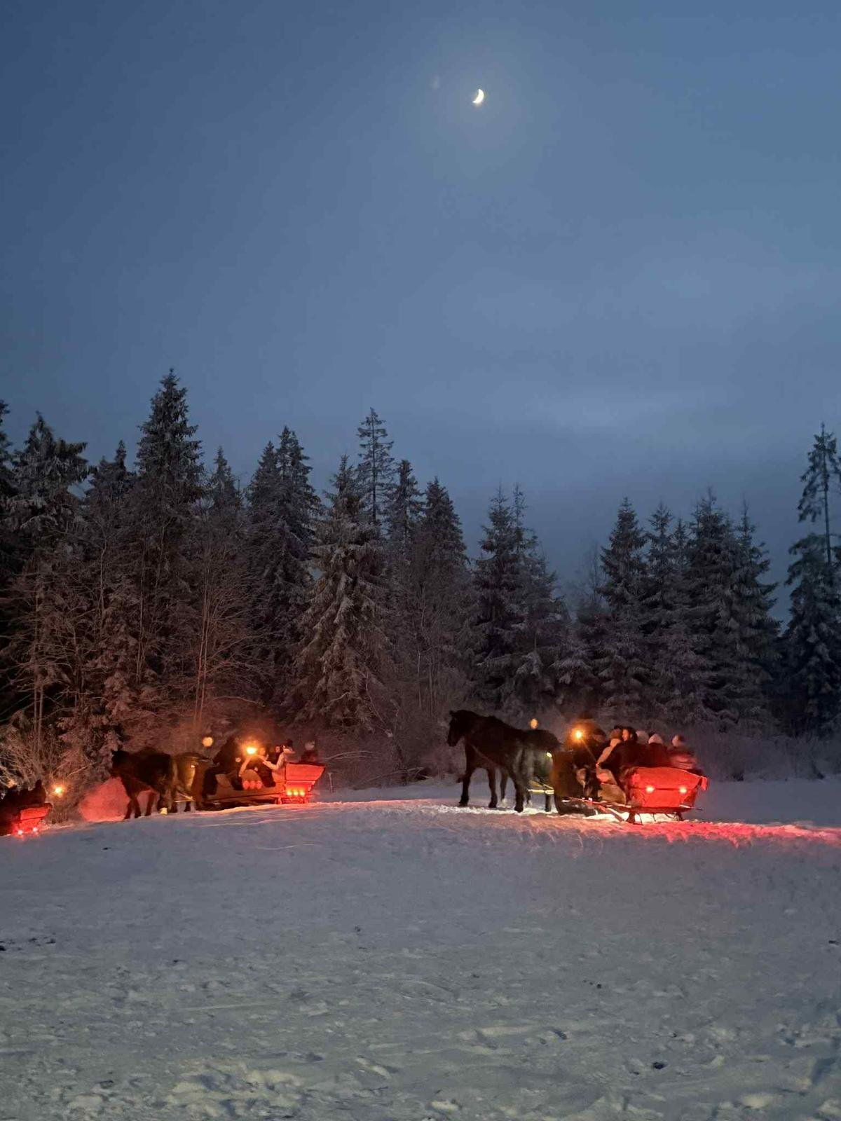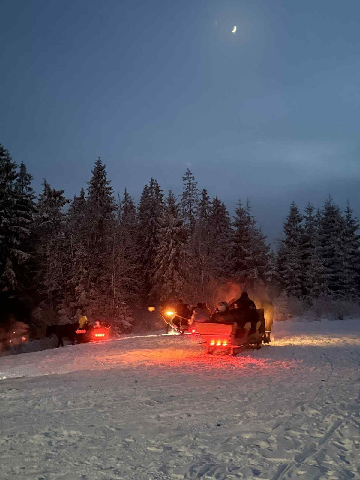Zapraszamy na magiczny kulig świąteczny, który pozwoli w pełni poczuć niezwykłą atmosferę świąt w górskim klimacie. W dniach 22, 23, 24, 26 oraz 27 grudnia organizujemy niezapomniane przejażdżki saniami lub wozami zaprzężonymi w konie, które zabiorą Was przez malownicze, ośnieżone górskie szlaki. Po kuligu zapraszamy na ognisko w górskim stylu, gdzie będzie można delektować się tradycyjną kiełbasą, pieczonym chlebem oraz rozgrzewającymi regionalnymi trunkami. Dla tych, którzy preferują coś delikatniejszego, serwujemy gorącą herbatę. Ta wyjątkowa okazja to idealny sposób na spędzenie czasu w świątecznej aurze, ciesząc się pięknem natury i ciepłem towarzystwa.